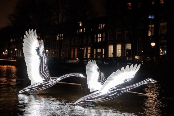 ’Swans’ by Jon Voss at the Amsterdam Light Festival. Photo: Ramon van Flymen ANP