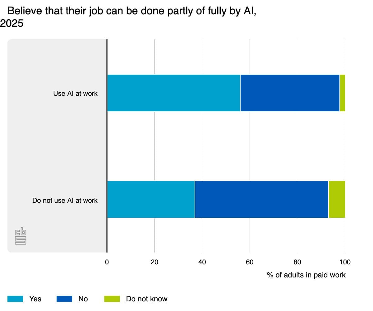 People with a university or HBO college degree are more likely to think their jobs will at least partially disappear, as do 56% of those already working with AI tools.