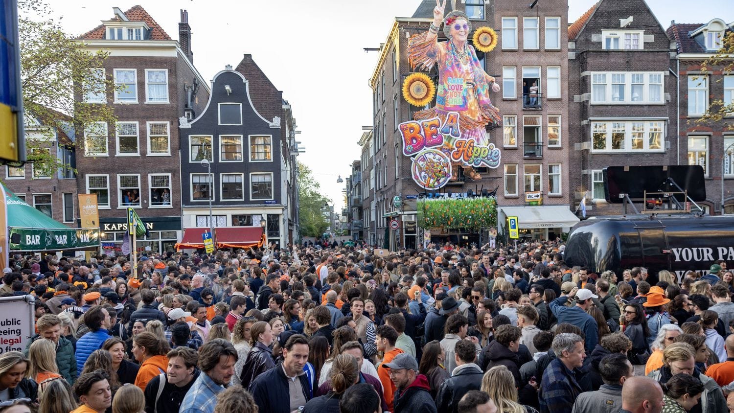 Utrecht’s local authorities told people to avoid the centre at around 9pm after Janskerkhof, Stadhuisplein and the Van Asch van Wijckskade flea market all filled up. In Gouda, an estimated 12,000 to 14,000 people packed the Markt for the Oranje Geluk festival, with gates closed and visitors complaining of overcrowding .